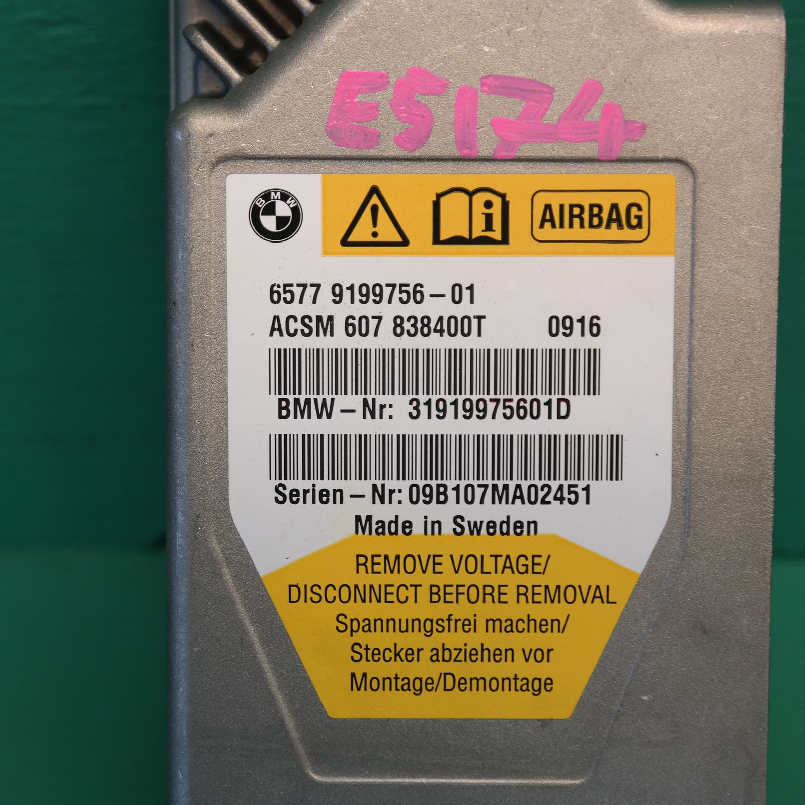 AIRBAG MODULE/SENSOR F01 P/N 9.199.756