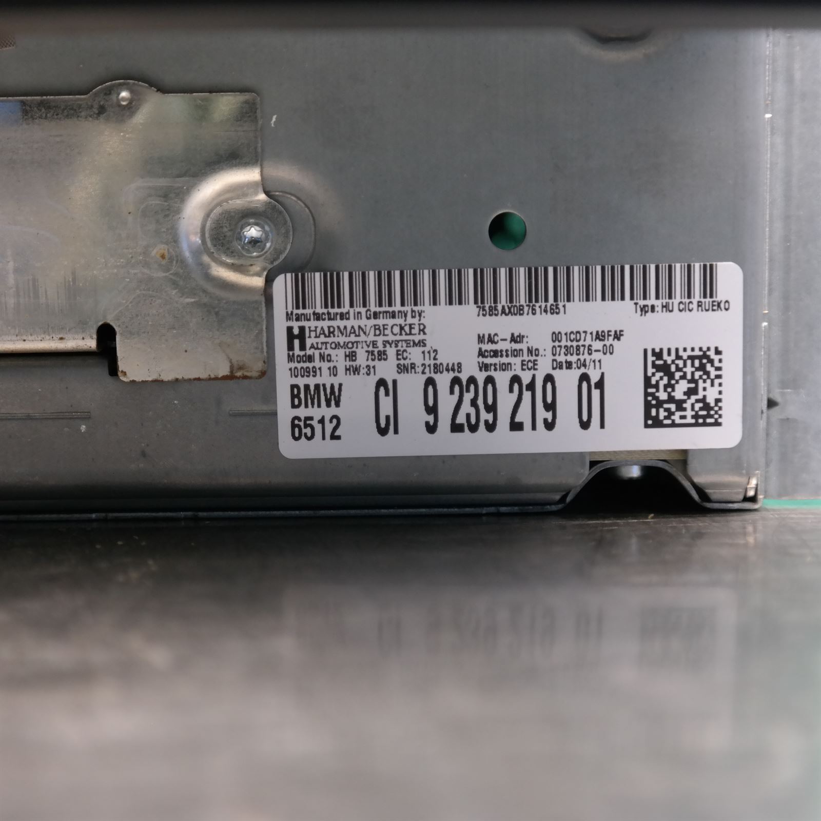 STEREO/HEAD UNIT E89 # Head Unit # (INFOTAINMENT COMPUTER) P/N 9.239.219