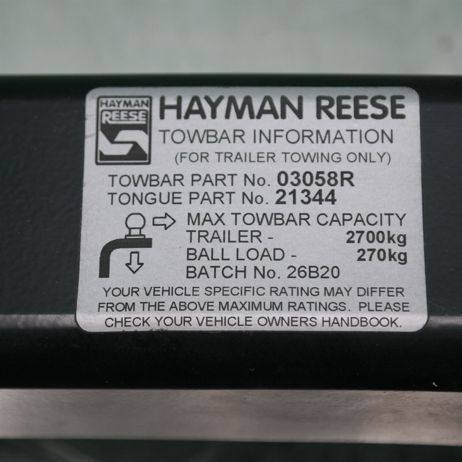 TOWBAR F16, 12/14-08/19