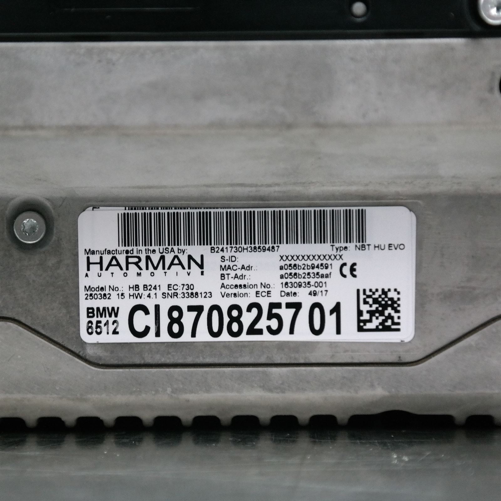 STEREO/HEAD UNIT F15 # Head Unit # NBT EVO HU (AF0) (178) *65-50*