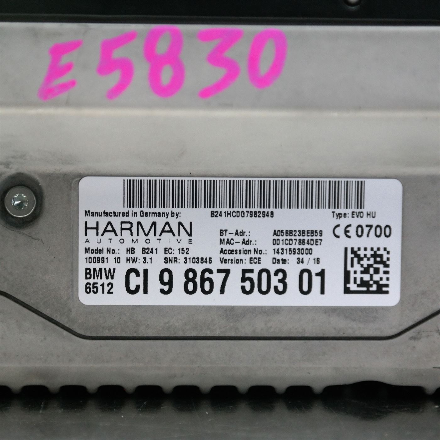 STEREO/HEAD UNIT F22 # Head Unit # NBT EVO HU (AF0) *65-50*