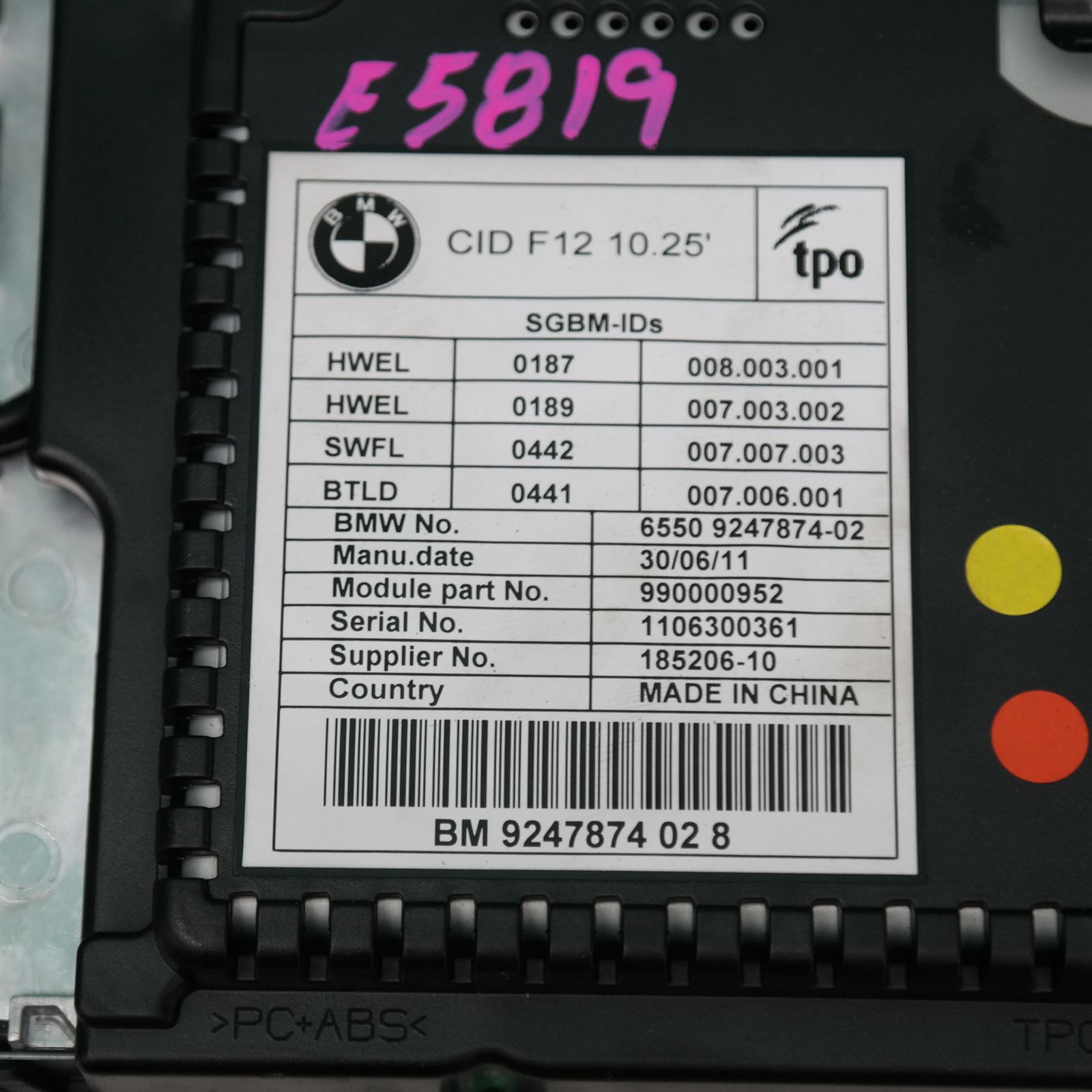 - The parts security markings have not been removed or altered.